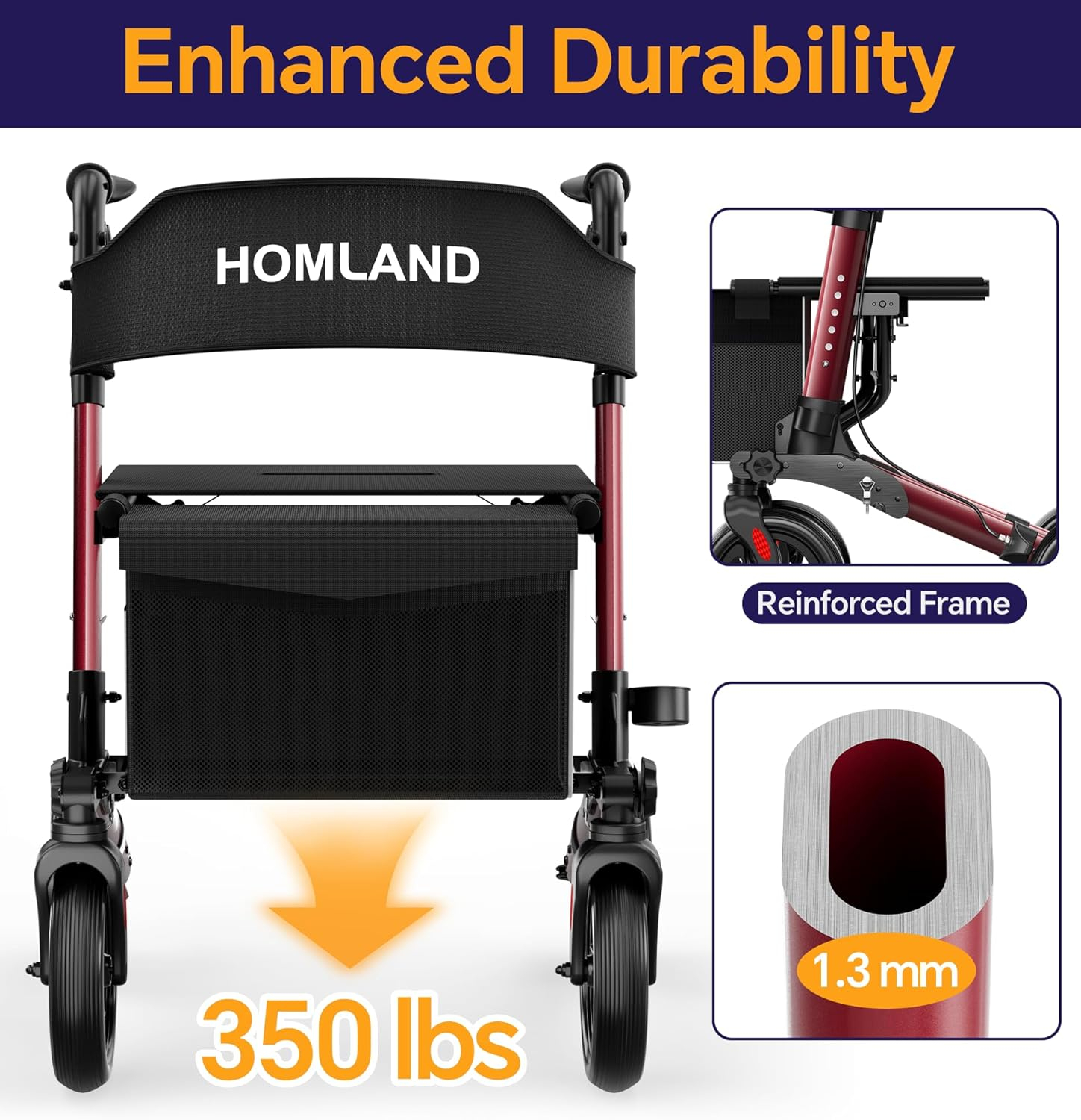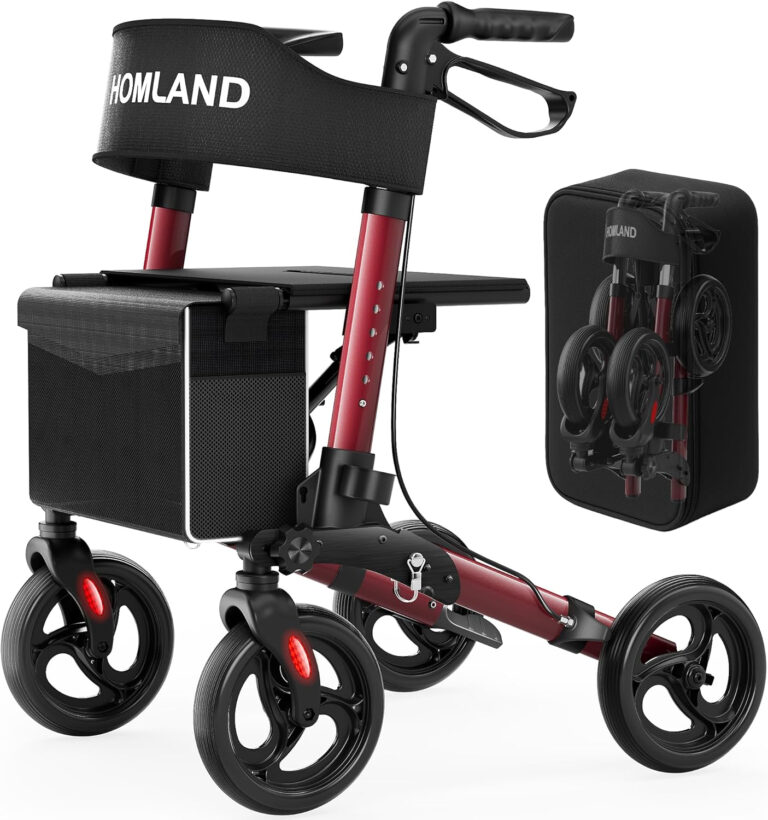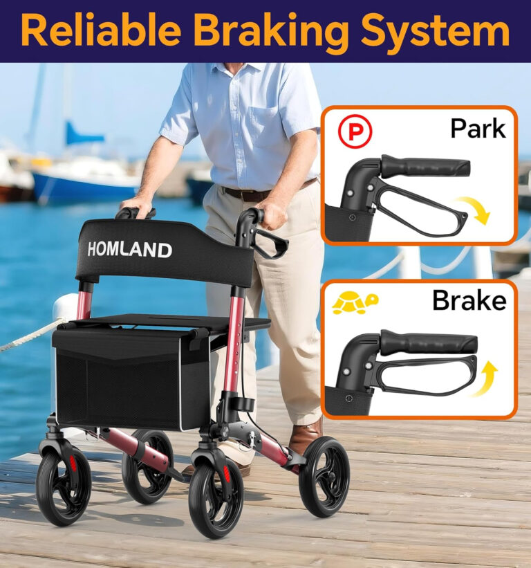 Rollator Walkers for Seniors with Seat, Foldable Walker, 8″ Wheels Lightweight Aluminum Rolling Walker
