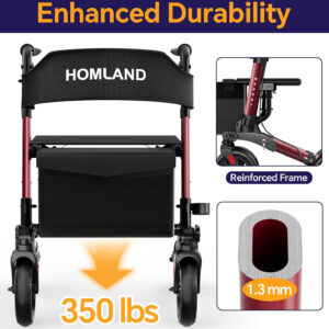 6 reviews for Rollator Walkers for Seniors with Seat, Foldable Walker, 8″ Wheels Lightweight Aluminum Rolling Walker