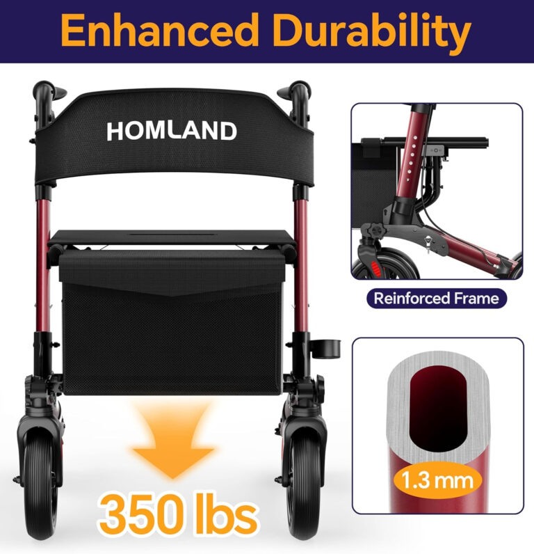 My wife needed a walker with a seat. We reviewed and watched Youtube videos. We decided we wanted a rollator (Walker with 4 wheels). We also needed something we could fold up and fit in the back of a Compact SUV. The walker barely fit. The rollator R3 folds up and can be put in a bag.Watch the videos on how to put the R3 together and how to fold it up.. I am in my late 70’s and it took me 15 minutes to assemble. At this point, I can still lift the R3 into the back of our SUV.The seat is not padded because it needs to fold up. Not sure my wife needs a padded one but there are plenty of padded seats that should work. We are waiting to see if we need one.My wife really likes it much better than the walkers. The only thing she has had to get use to the longer rear wheel placement. It is so much easier for her to get around.This Rollator R3 is very sturdy and can hold 350 Lbs.Definitely recommend this rollator.