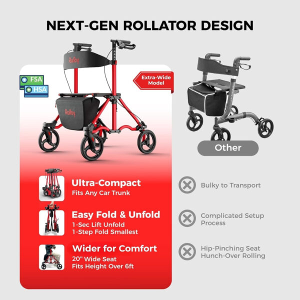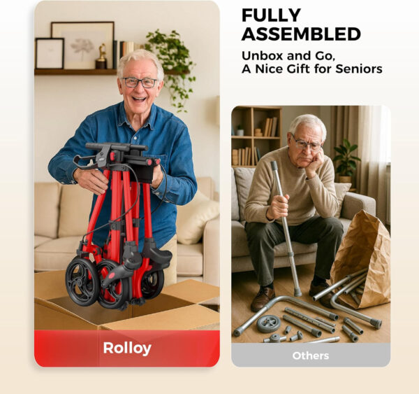 We recently purchased the Rollator Walker for Seniors with a seat for my mother-in-law to use after her surgery. Before the procedure, we both tested it out to ensure it was the right fit, and we were both genuinely impressed. The first thing that struck us was how it lives up to the “lightweight” claim. For a piece of equipment this sturdy, it’s surprisingly easy to lift and maneuver, which is a huge plus for anyone who needs to travel or simply move it in and out of a car.The phrase “easy to use right out of the box” perfectly describes our experience. There was no complicated assembly or confusing instructions. We were able to unfold it and get started almost immediately, which is a relief when you just need a reliable mobility aid without any hassle.Despite its light weight, this walker feels incredibly sturdy. It has a 350lbs capacity, and you can feel that it’s built to handle it. We both felt completely secure and stable while using it, and the extra-wide seat was a great feature for taking a comfortable break. The 8″ wheels roll smoothly over different surfaces, adding to the sense of security.Finally, the folding mechanism is a fantastic feature that makes a big difference. It folds up ultra-compactly and with very little effort. This makes it perfect for travel or for storing in a small space when not in use. The height-adjustable feature is also great, making it a versatile option for taller users. Overall, it’s a well-designed, reliable, and user-friendly product that we would both highly recommend.