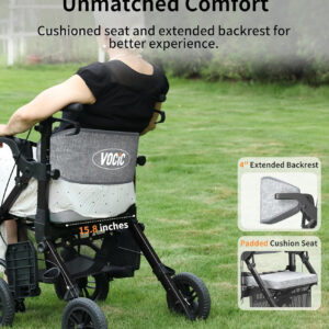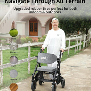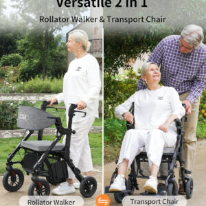 I just received my new Z51 Shift model rollator/transport chair today and I’m giving my initial impressions. It’s a well-thought-out design for a very useful dual-purpose chair. I researched every similar style dual purpose chair I could find online and this seems to have more great features and sturdier construction than any other I found for the price – the trade off is it’s a bit heavy. I especially like the much sturdier wider, treaded wheels. I can see why most of the reviews are so positive.I made mental notes from a helpful reviewer who said it’s easier to make tight turns if the ‘pusher’ taps one brake: right brake to turn right, left brake to turn left. And I can see why it’s important to keep the swivel wheels turned forward over uneven surfaces, otherwise you could put undo sideways pressure on the wheel yoke and risk it breaking, as some have done. I guess we can’t expect it to steer or push like a grocery cart, with our loved one in it. The weight is more vertical than a cart. And, with those 8″ rear wheels, we also can’t expect it to handle like a standard wheelchair either. But most folks will have no trouble at all.I did have one frustrating problem putting it together though. At least at first look, the 2 larger swiveling wheels appear to be interchangeable for either side but they are not. Their plastic fittings into the chair legs have a brass insert on only one side, which I found out must be facing the chair’s inward side so the knob can screw all the way in from the outside. There’s nothing in the instructions for this, which made for very frustrating trial and error. Regarding assembly: As others have mentioned, it would be VERY helpful if they would label the various wheels and handles with stickers, with corresponding stickers on the matching sides of their mated parts: A to A, B to B and so on. But then, you only have to assemble it once, and you’re done.One drawback so far: Be aware that the “cushioned” seat is very hard. So for now, I’m using a cushion on top. The hooking of the foot rests onto the sides is fussy and a hinge arrangement would be nice instead. But some folks might want to use it as a rollator without the footrests with their added weight.All that said, I look forward to a bit more freedom to get around and get out more easily with the help of this wonderful chair and my ‘pushy’ friends.Update 2-1-25: BE AWARE. Took the chair for a 3-hour outing and found some challenges. Yes, as other reviewers have mentioned, it is difficult to push a seated person over even small transitions like from cement onto asphalt. Even more difficult if there’s even a tiny bit of an incline involved. Also, I’m 5’2″ with narrow shoulders and the handles made for a very tight fit and zero wiggle room. Wish the seat back was a bit higher for better support and chair balance.