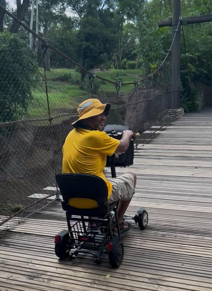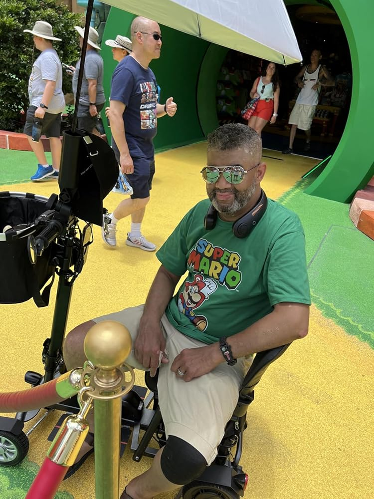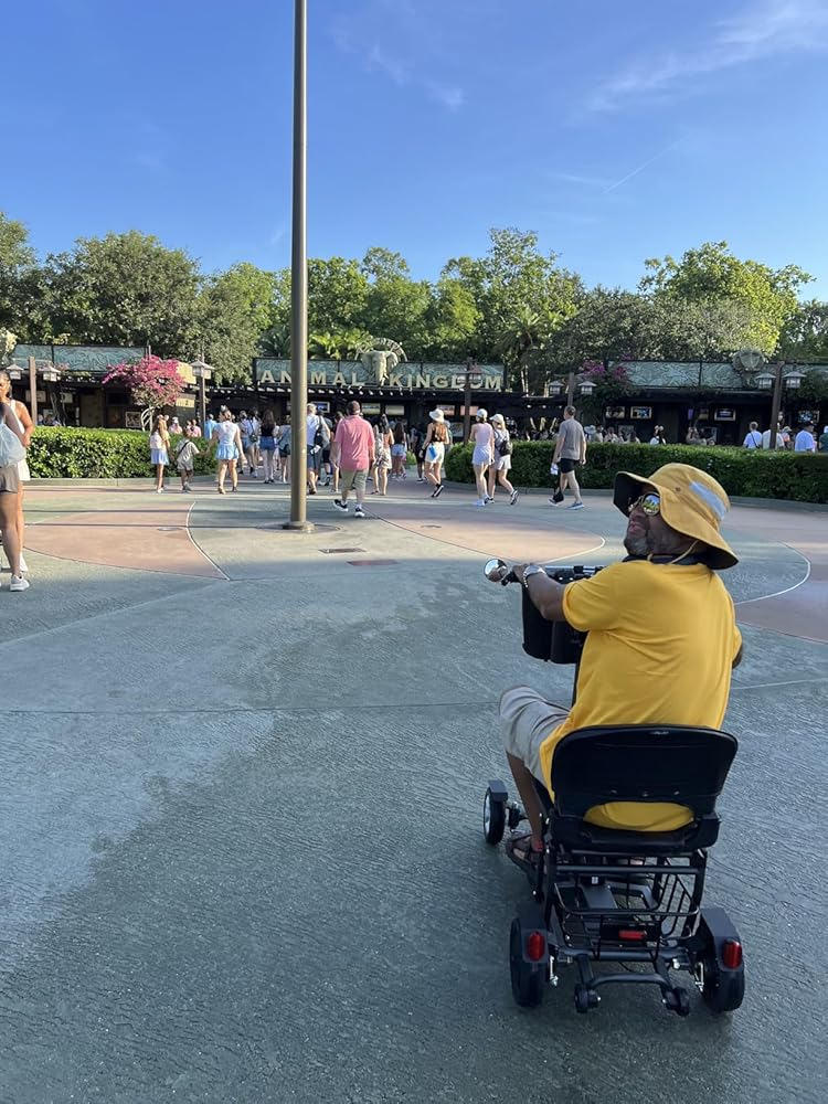 This battery lasted all day at Walt Disney World. Went to animal kingdom and from morning until close we made it to hotel of course we took a lift! But battery on one full charge. We went to sea world, we went to epic, and Disney springs. 2 weeks vacation was great and perfect because we bought this! Uber easily helped us put it on the trunk. Great purchase! Definitely, recommend this. My husband has DDD and survived sepsis. We still enjoyed our vacation! Thanks to whoever made this easy to close. They Even helped us at the train station. I took a picture of battery life on our way out! But it!!! If you’re going on vacation 👍🏻