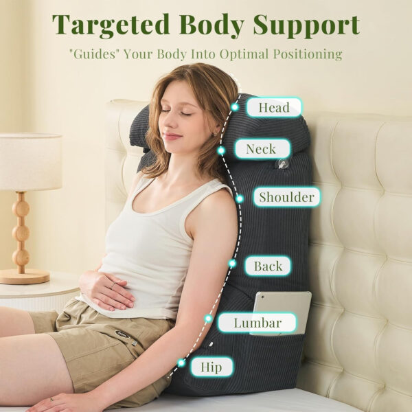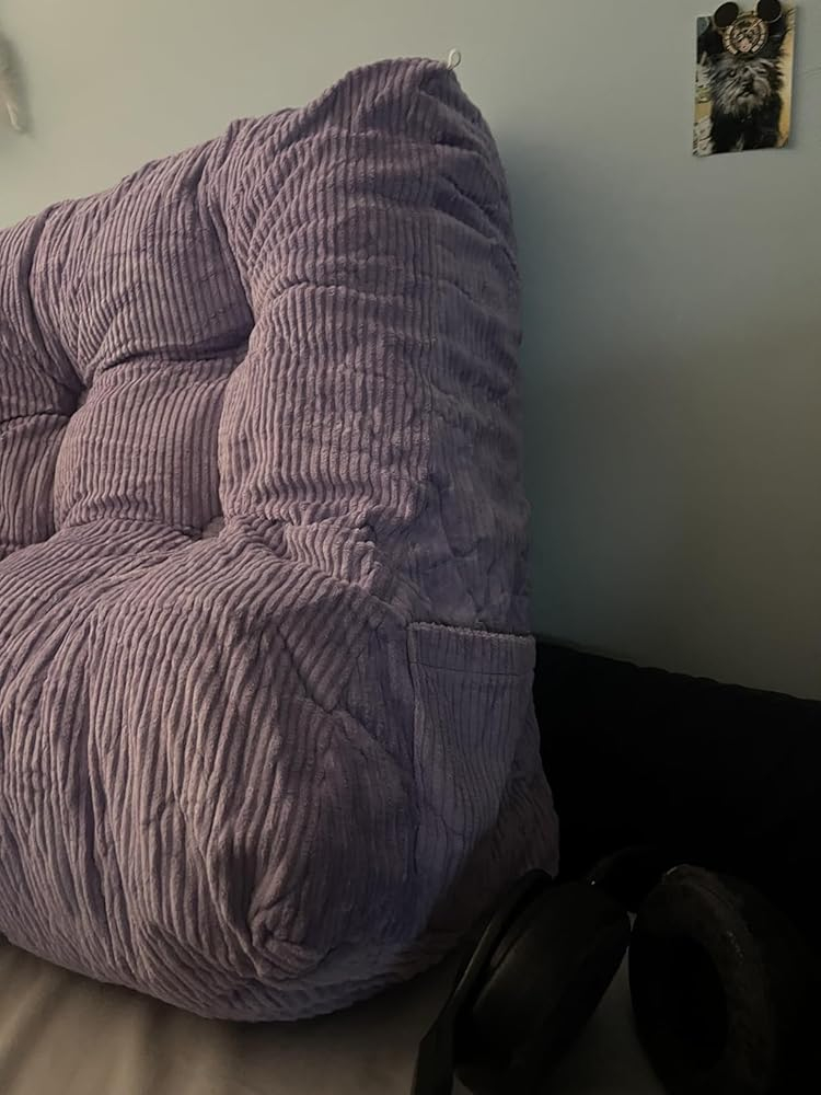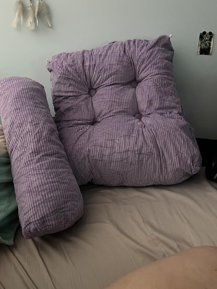 Fit & Sizing:The pillow set is generously sized (23”x11.5”x23”) and provides full back coverage for upright support. The included neck cushion is just the right length to cradle the neck without feeling bulky or sliding out of place.Design & Construction:The lavender color is beautiful in person—soft, calming, and stylish. The corduroy-like cover adds a cozy texture, and the tufted stitching helps the filling stay evenly distributed. I like that the set comes with a handle for easy moving, and there’s even a side pocket for keeping a phone or remote handy.Ease of Use:Right out of the box, it fluffs up nicely and is ready to use within a short time. The detachable bolster can be placed at the neck, lower back, or even under the knees, making it versatile depending on the support you need.Performance:This wedge pillow is excellent for sitting up in bed to read or watch TV. It also works well for elevating your upper body after surgery or if you deal with acid reflux. The support is firm but cushioned enough to stay comfortable for long periods.Pros:   •   Soft, cozy fabric in a calming lavender shade   •   Includes detachable neck cushion for added versatility   •   Supportive yet comfortable for long use   •   Side pocket and carry handle are thoughtful touchesCons:   •   Cover is not removable, so cleaning requires spot-cleaning   •   May be a bit too large if you have a very narrow bedBottom Line:This wedge pillow set exceeded my expectations in both comfort and design. It’s supportive enough for health needs like reflux or post-surgery recovery, but also perfect for everyday relaxation in bed. Highly recommend if you want a mix of functionality and comfort.
