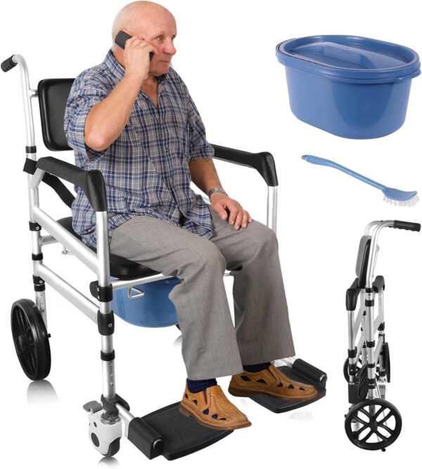 3 reviews for Shower Chair with Wheels Aluminum Alloy 4 in 1 Foldable Height Adjustable Shower Wheelchair, Sturdy Rolling Shower Chair with Large Commode for Seniors(Black)