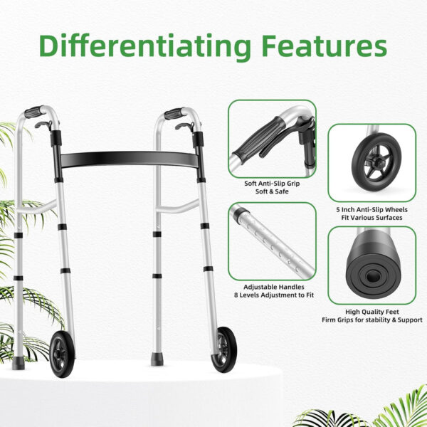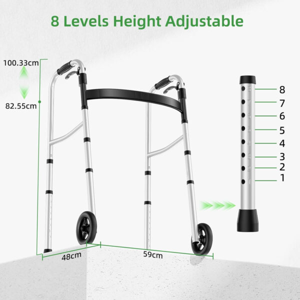 1 review for Standard Walkers for Seniors – 8 Levels Adjustable Height Folding Walker with Wheels, Lightweight Front Wheel Walkers for Elders & Adults & Handicapped, Weighing Up to 350 Pounds Rolling Walker