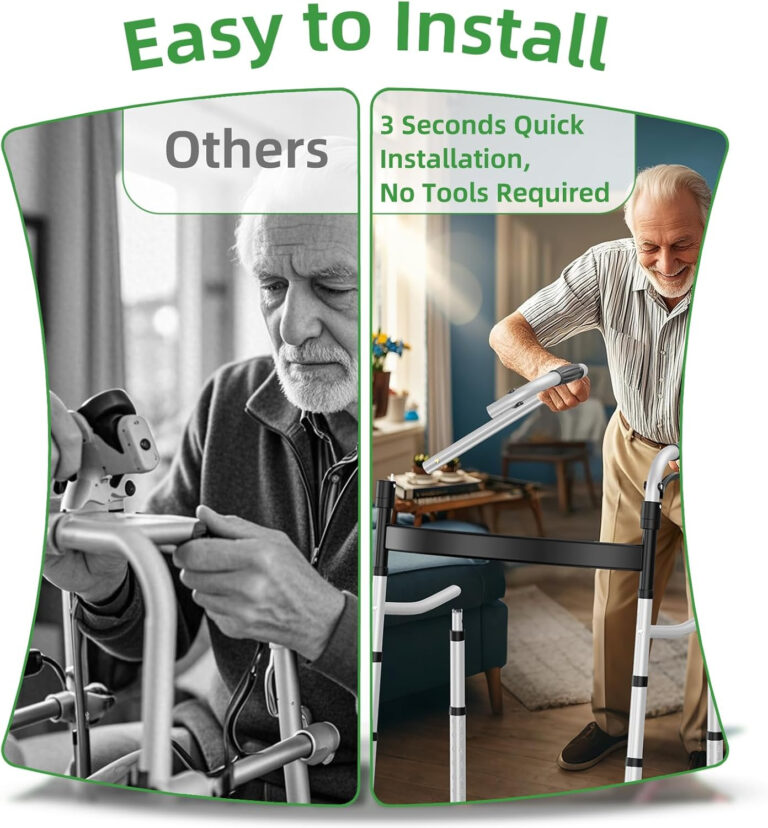 Stability AppreciatedThis Standard Walker has made all the difference in this household. The walker is very lightweight, only 6.5 pounds; but, the light weight is not a measure of how much stability it provides. There is approximately a seven inch range of height adjustment options.This order was made with one family member in mind and we were quite concerned about mobility after a procedure. While the use of the walker will be temporary, during the recovery period of toe surgery, it’s very easy to see just how useful and handy this unit will be in many other types of situations, such as post-surgery convalescing or post-injury recovery. Since this walker is going to be used only for a short period of time currently; afterward, it will be pretty easy to store away because it folds up to just a few inches thick. It’s also incredibly easy to fit the walker into a small car for transporting.The structure of the walker is solid, with wheels that are five inch big and anti-slip. The fact that each side operates independently is an amazing feature, especially for navigating corners!Assembly took me only a few minutes to complete. It was very easy and no tools were needed.I am glad that I ordered this walker.