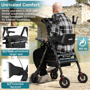 3 reviews for Upright Walkers for Seniors, Stand Up Rollator Walker with Padded Seat and Backrest, Heavy Duty Forearm Rollator with Support Handrail, Holds up to 450 pounds, Compact Folding, Black