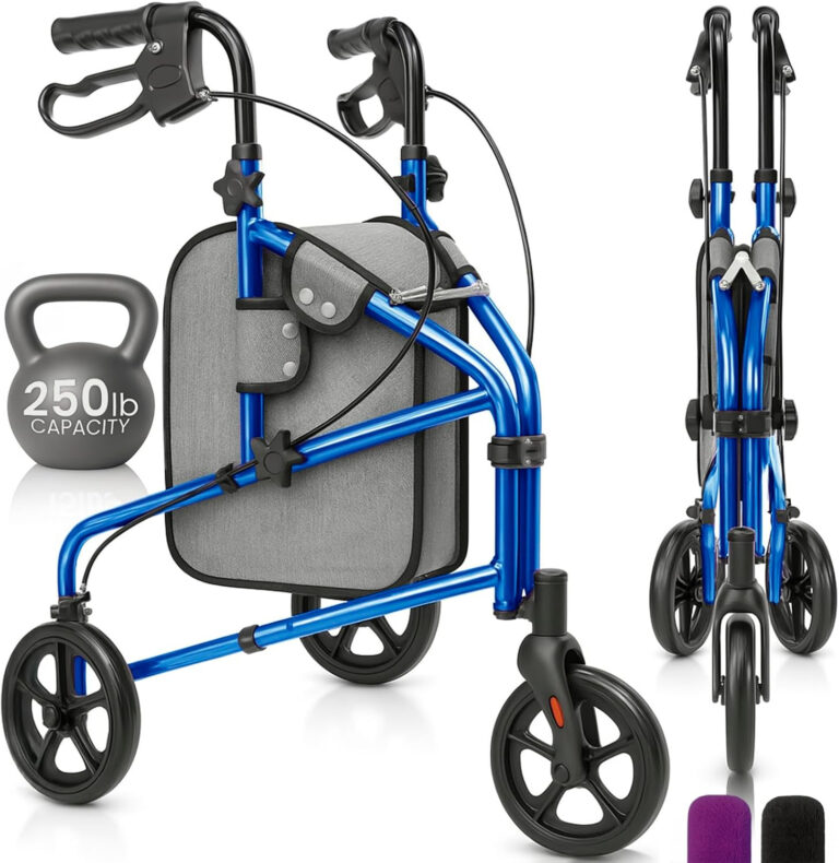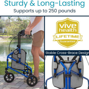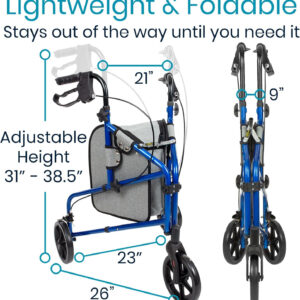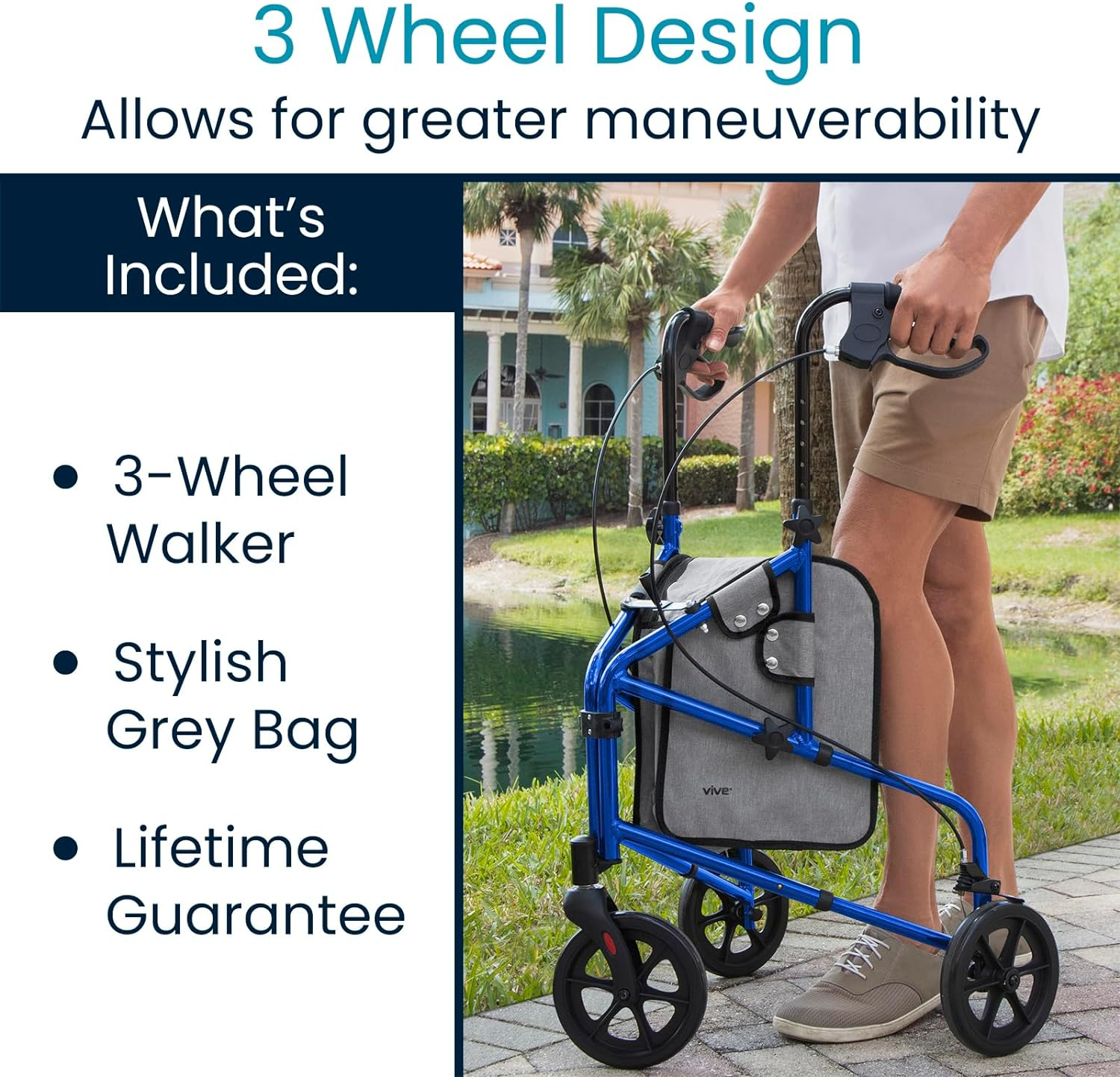 3 reviews for Vive Mobility 3 Wheel Walker – Three Wheeled Rollator for Seniors – Lightweight, Foldable, Narrow, Heavy Duty – for Elderly Men Women – Folding 3-Wheel Tri Scooter with Basket Bag