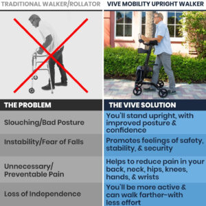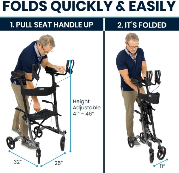 6 reviews for Vive Mobility Upright Walker with Seat – Stand Up Rollator, Arm Rests, Heavy Duty, Folding Medical Aid Scooter for Elderly, Seniors – Walking Assist, Foldable Transport Chair – 300 lb Capacity