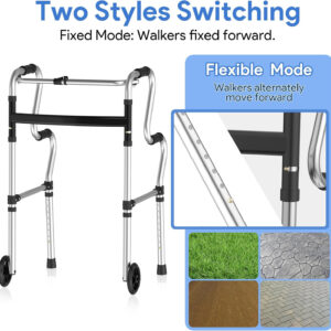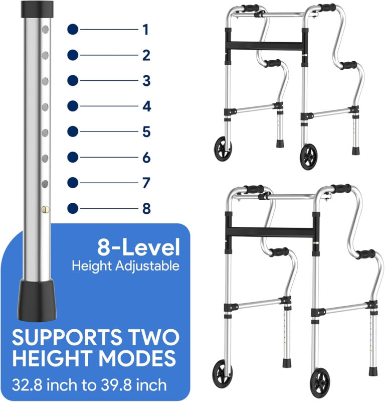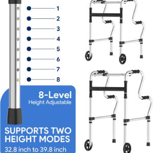 Walkers for Seniors, Folding Walker, Narrow Walkers for Small Spaces, Standard Walker Height Adjustable, Front Wheeled Rolling Walker, Upright Mobility Aid for Seniors and Handicap, Up to 300 Pounds