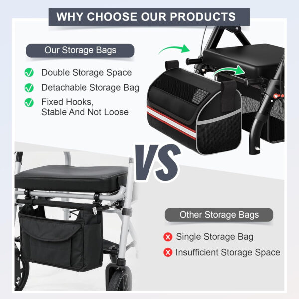 If you are looking for an upgrade this is the one to buy. I bought a less expensive walker as my first one and so glad I got this one as my upgrade. This walker is very sturdy and has wider seat. Love that it has removable storage bag up front and under the seat that flips up. Easy to fold to put in trunk. Found that this walker is much easier to maneuver which comes in handy if you have limited mobility.