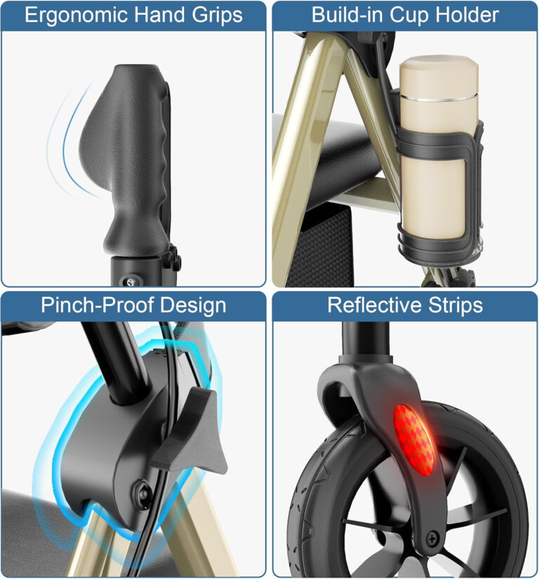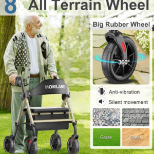 3 reviews for Walkers for Seniors with Seat, Foldable Rollator Walker, Reinforced Aluminum Frame, 8″ Big Rubber Wheels for All Terrain, Height Adjustable Lightweight Rolling Walker