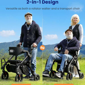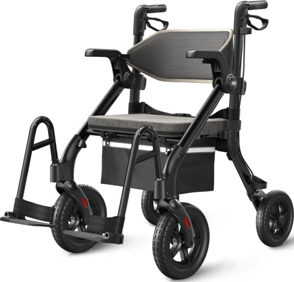 3 reviews for Walkers for Seniors, Z55 2 in 1 Walker Wheelchair Combo, No-Bend Footrest, Rollator with 10″ All Terrain Big Wheels, Transport Wheelchair Foldable, Rollator with Seat & Brakes, Storage Bag