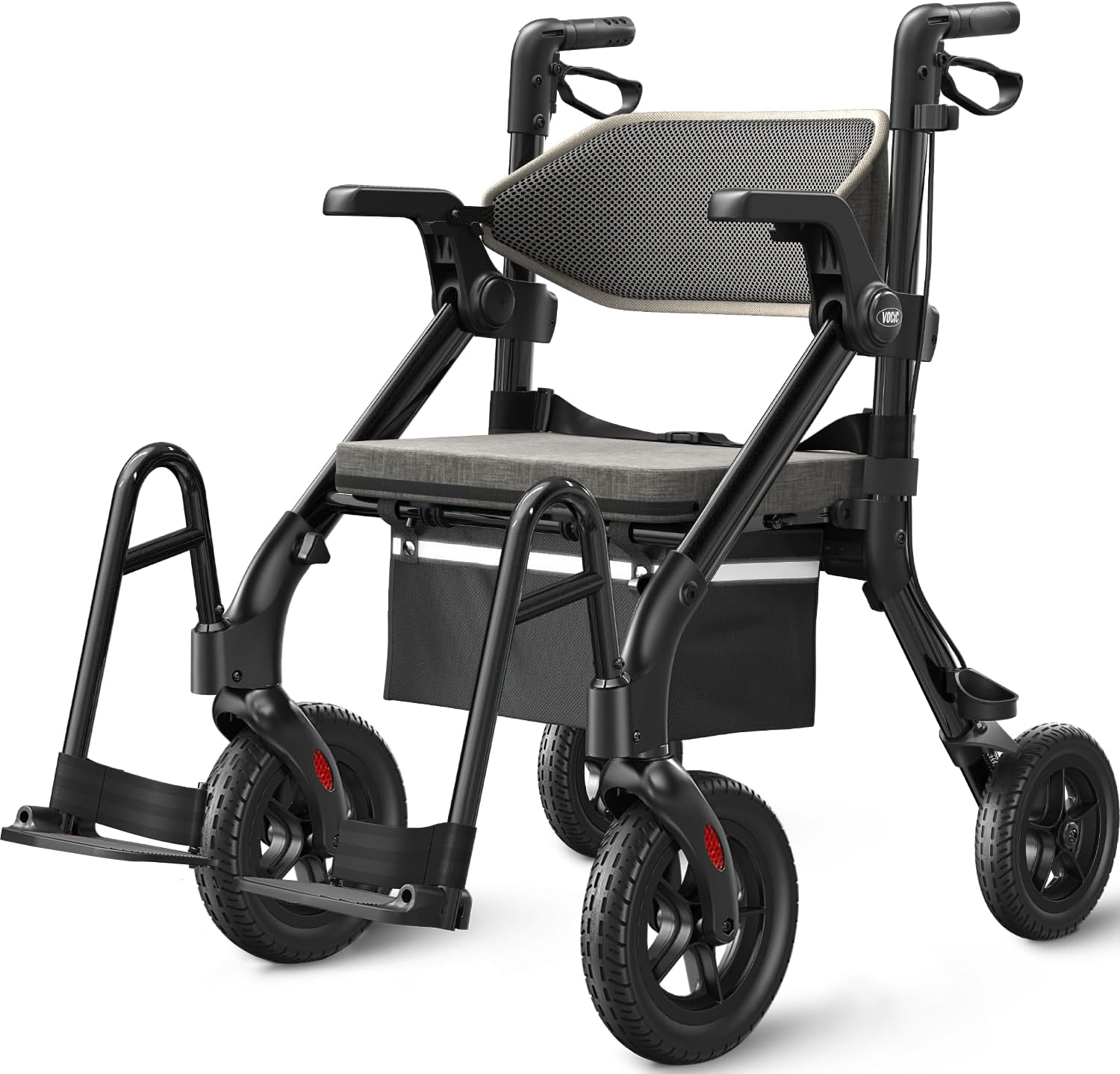 Walkers for Seniors, Z55 2 in 1 Walker Wheelchair Combo, No-Bend Footrest, Rollator with 10″ All Terrain Big Wheels, Transport Wheelchair Foldable, Rollator with Seat & Brakes, Storage Bag