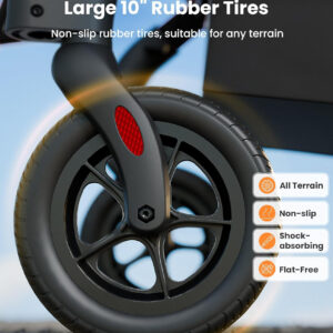 Very sturdy and easy to assemble. The leg rests can be folded, and it fits nicely in the trunk of my SUV. The seat is spacious and comfortable. Whether it’s for short walks or longer outings, it offers great support. I especially like the cane holder, very convenient. There’s also a large storage bag under the seat, which is super practical. Overall, it’s a thoughtful and well-designed walker that’s perfect for outdoor use.