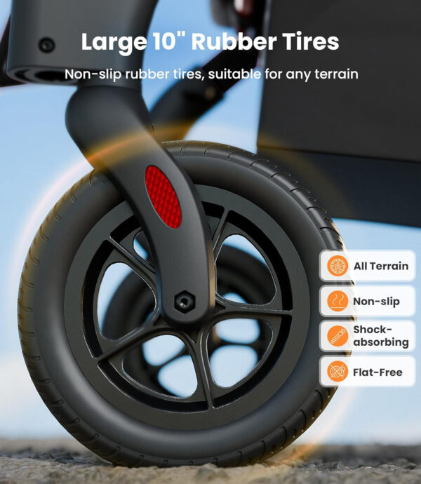 This is a really high quality rollator. I’ve used other ones and this one is really far and above any I’ve seen. The wheels are perfect for using it on any terrain, the seat is decent, and the frame is really very sturdy. The foot rests are easy to lock and unlock and provide the perfect counterbalance for using it as a wheelchair so it doesn’t tip forward. The cane holder attachment is also very secure. I’m very impressed overall. It also looks nice. I’m young (under 40, I have MS), and I wanted something functional and visually appealing. This hits the mark.