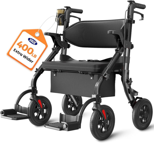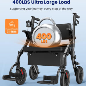 Brilliant design – great utility and usability. Easy to assemble, easy to use, very sturdy, very safe. I can still walk with a rollator but on occassion need wheelchair transport. This is perfect for me.