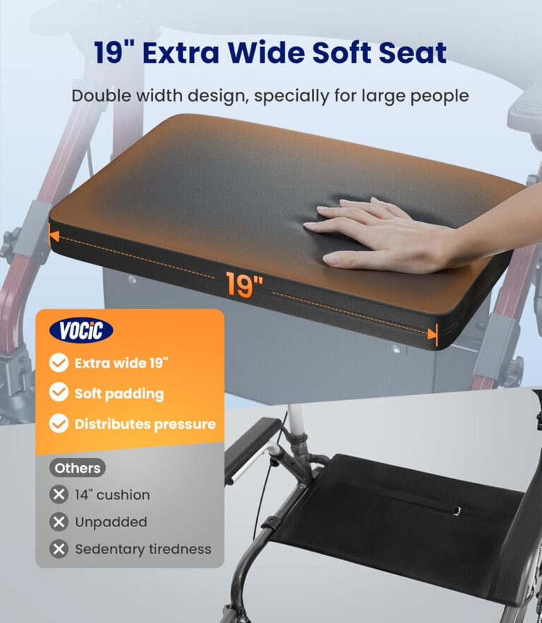 EDITED To Add:I have changed the 1 star to 4 now because customer service is very kind, professional, and quick to remedy the problem by offering potentially different usable walkers or a full refund. Thank you._________________Original post:Not as sturdy as it should be. Very unhappy with this costly purchase.It is a larger size, and a larger person can sit on the bench, but if you have the legs attached, this will tip forward with the smallest of movements, even after adjusting the legs. The height is very tall at the shortest, so if you are under 5’5″ – 5’6″, I would suggest something smaller for the use of the walker. Also, getting onto the seat/bench area, it is on the taller side, so again, a shorter version might be safer due to this easily tipping if the legs are attached. They are definitely not to be used to step up to sit or to use them to scooch yourself up onto the seat. Pretty much any downward pressure on the legs causes the tipping.