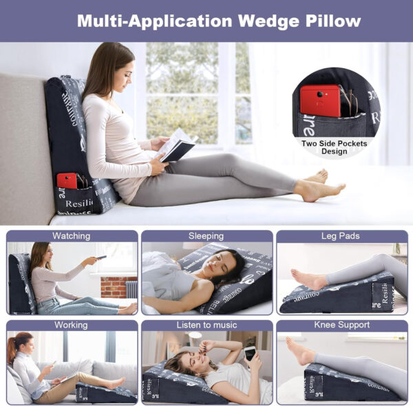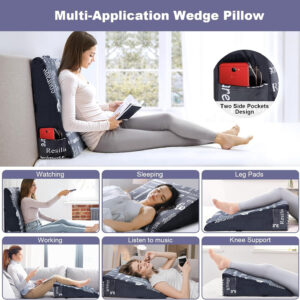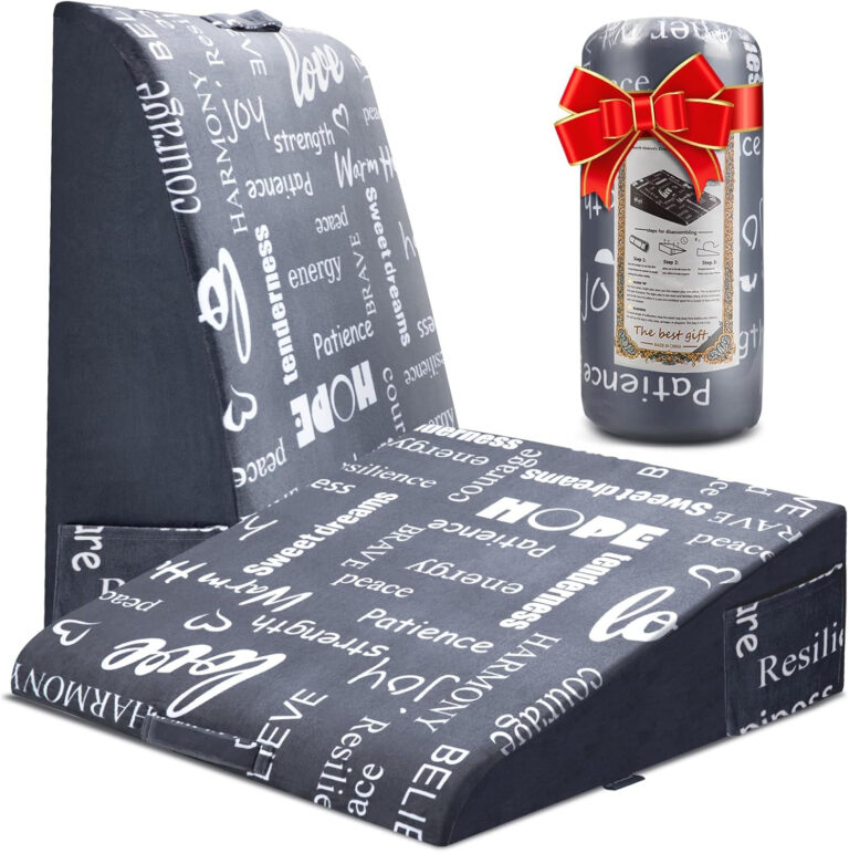 I love the fabric design and how soft it feels on the skin. The wedge is also not very stiff so it is kinda soft too.I love the lumbar pillow. I use it on my recliner. Not stiff at all, very comfortable.Now the wedge.Everyone has different preferences/expectations and experiences. I have been through 4 of these things. Well, 5 now. I just bought a new one that has curves that go with the contour of the legs. That is pretty comfy too.Anyways, this one i liked the softness of the fabric Just wish it was a bit firmer. My legs/feet kept falling off during the night. So after so many wedges, and i just now learned this after my 5th one, I just may be the type that needs the guards on the side. My prior wedges were a bit wider but i had them so long the foam softened. So thats why so many wedges.I gave this 4 stars because it just may work for some people. It did help with my sciatica for a bit until my feet/legs fell off during the night. Well, not my actually feet and legs, a little humor there, but just didnt stay on the wedge all night. And i am a back sleeper.This is ideal if you’re looking for something light, comfortable, soft and cozy.