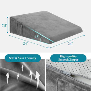 I love these for “Italian Nights”. Any meal with high acid, will lead to heartburn by bed time. This “wedge” pillow is firm and places my body in the right position to help eliminate the heartburn. The grey fabric matches the design of the bed sheets well enough. After a couple months of use they still have the same shape. Mind you, they are not used every night, just when needed!