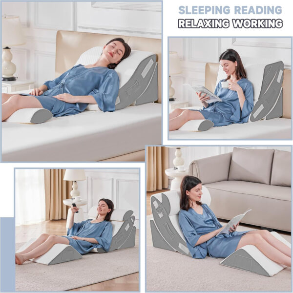 This was a godsend after a hysterectomy. It was the perfect adjustable amount of pillows that kept me sane! So many ways the pieces could be out together for a comfortable way to sleep, eat, sit up and more. I was actually comfortable sleeping upright even. I highly recommend. Worth every penny!