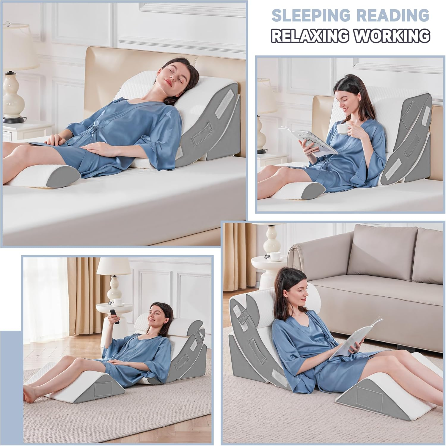 Yojoker 4PCS Orthopedic Bed Wedge Pillow Set for Sleeping, Post Surgery Foam Pillow for Body, Back and Leg Pain Relief, Triangle Adjustable Support Pillow – Acid Reflux, Anti Snoring & GERD Sleeping